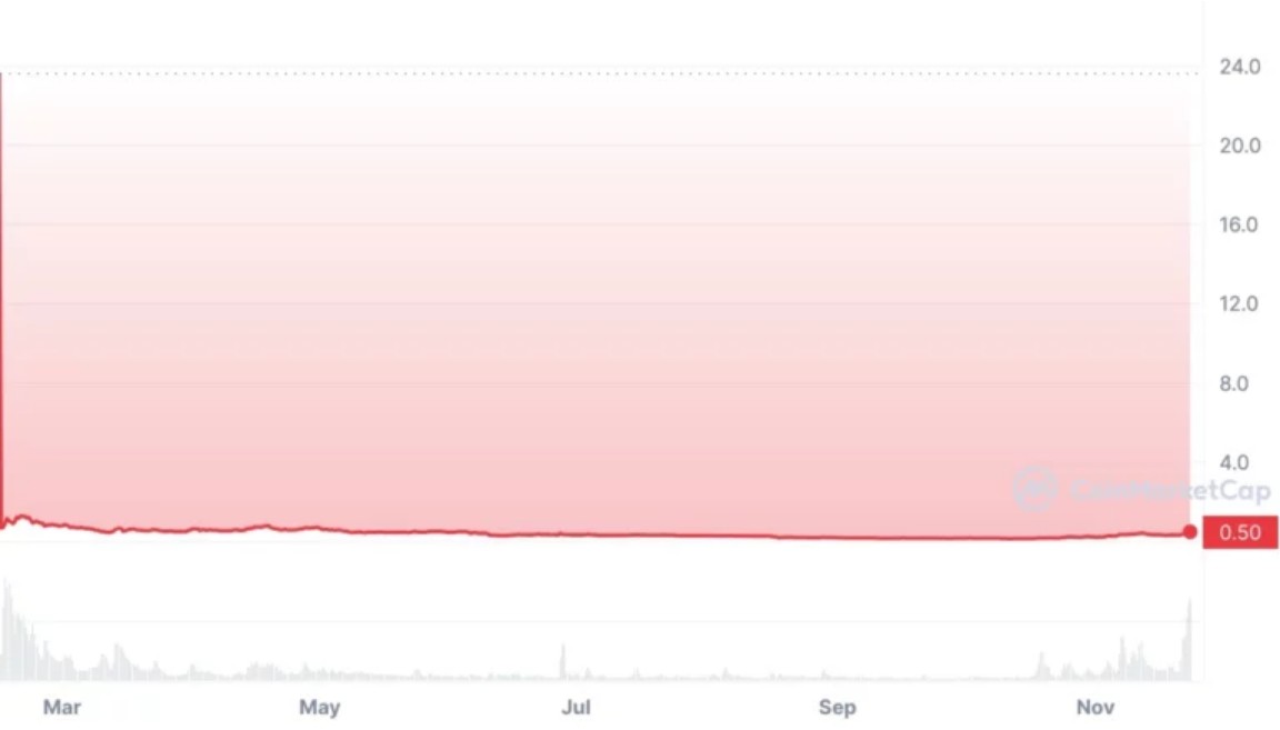 - 출시 시세: 2023년 2월 13일에 $45.98로 출발했으나 곧 $1 이하로 급락.